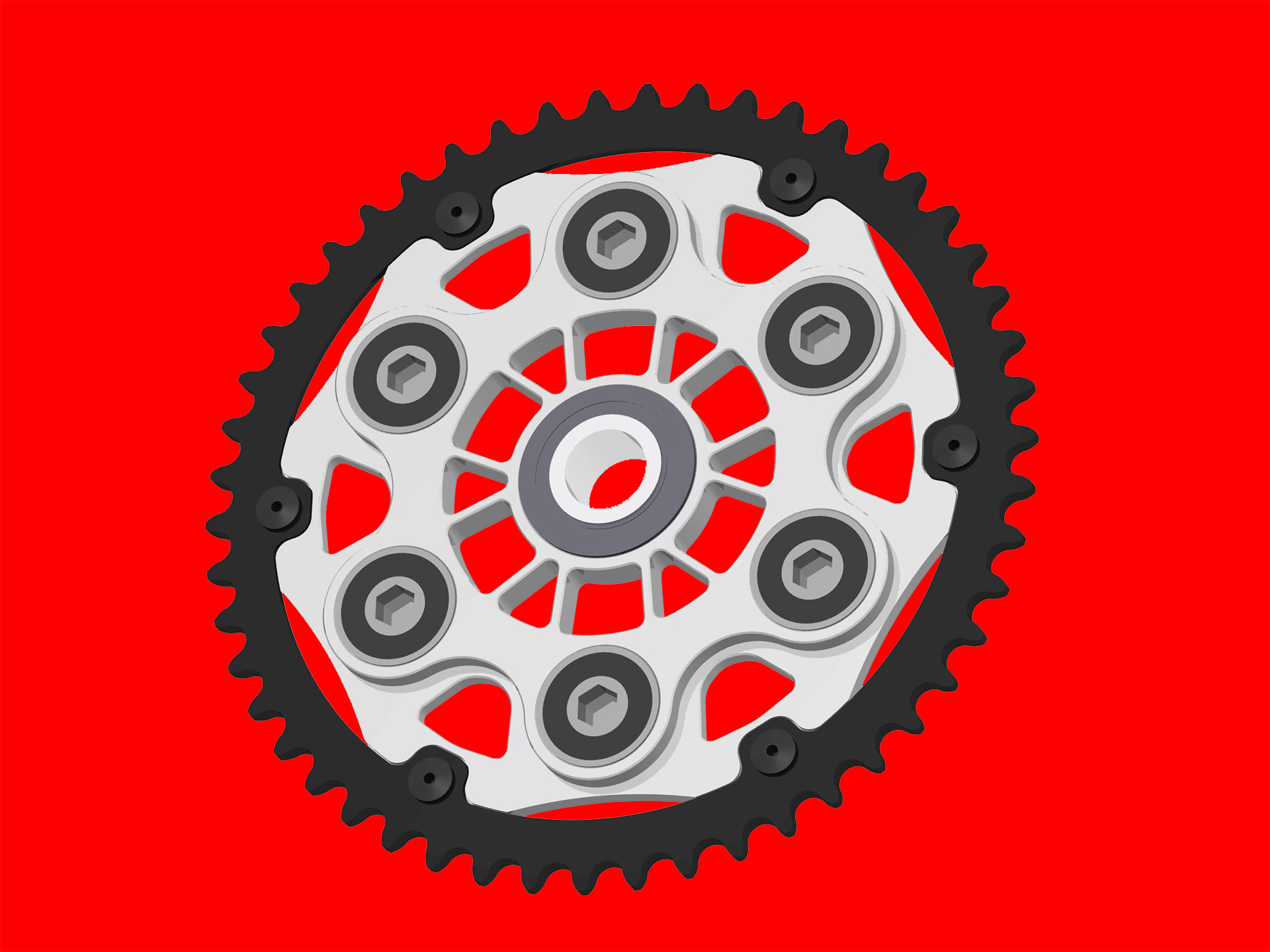 Design and manufacturing of Steel / Billet Chainwheel with integrated Cushion-Damper, compatible to standart MX / Enduro wheels and very lightweight.